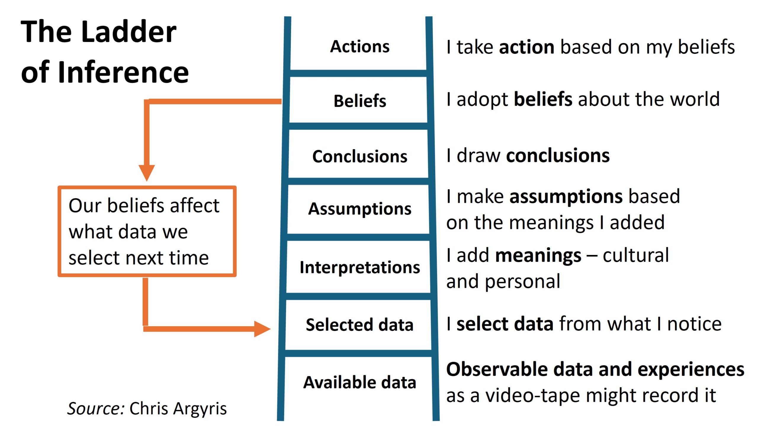 Not convinced? I think one of the most useful frameworks in this space is Chris Argyris’ ‘Ladder of Inference.’ Try working through that with a colleague who attended the same meeting and you may be surprised at the different versions of the same encounter that emerge.